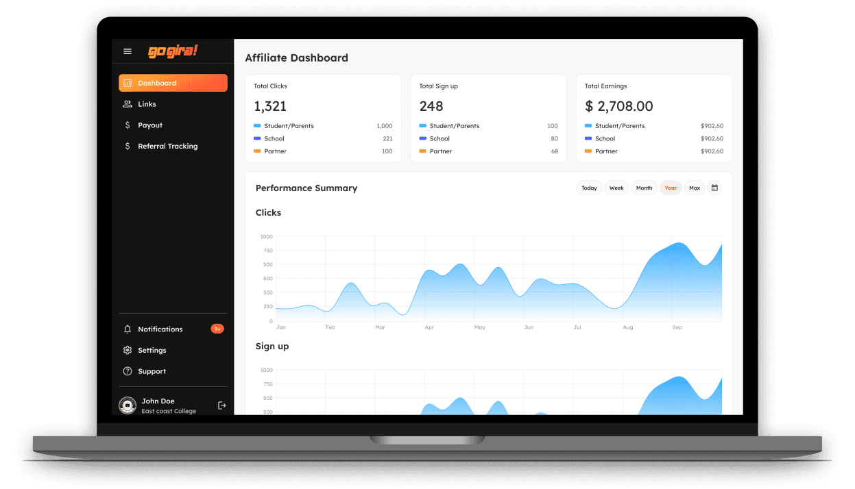 GoGira! offers one of the most rewarding affiliate and fundraising programs in the education and career services space.